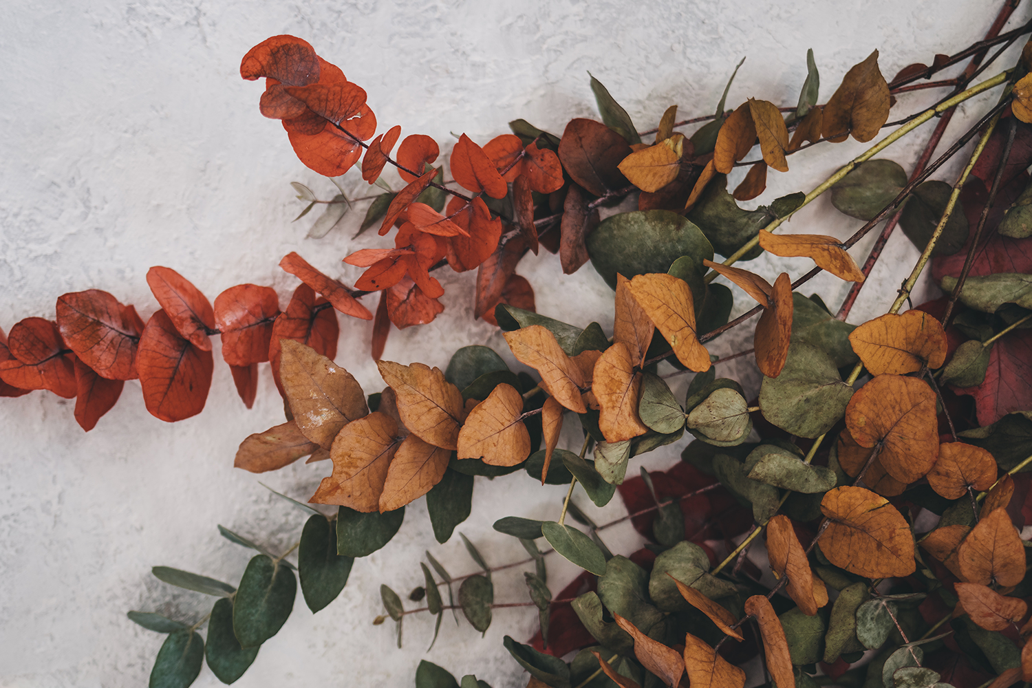 Autumn wreaths rely heavily on the beautiful colors from leaves during this season, so this makes up the bulk of your foliage. This can be groups of individual leaves fallen from trees, or branches and twigs with leaves attached to support the base better.