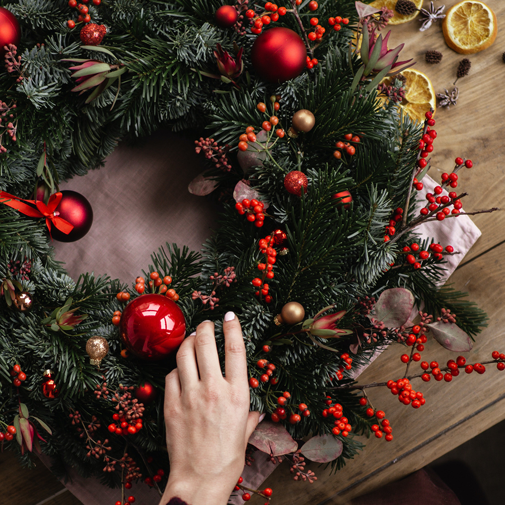 Christmas wreaths usually feature seasonal plants and foliage that we associate with winter or the festive holiday. These give Christmas wreaths their characteristic red and green coloration and make for some gorgeous smells too.