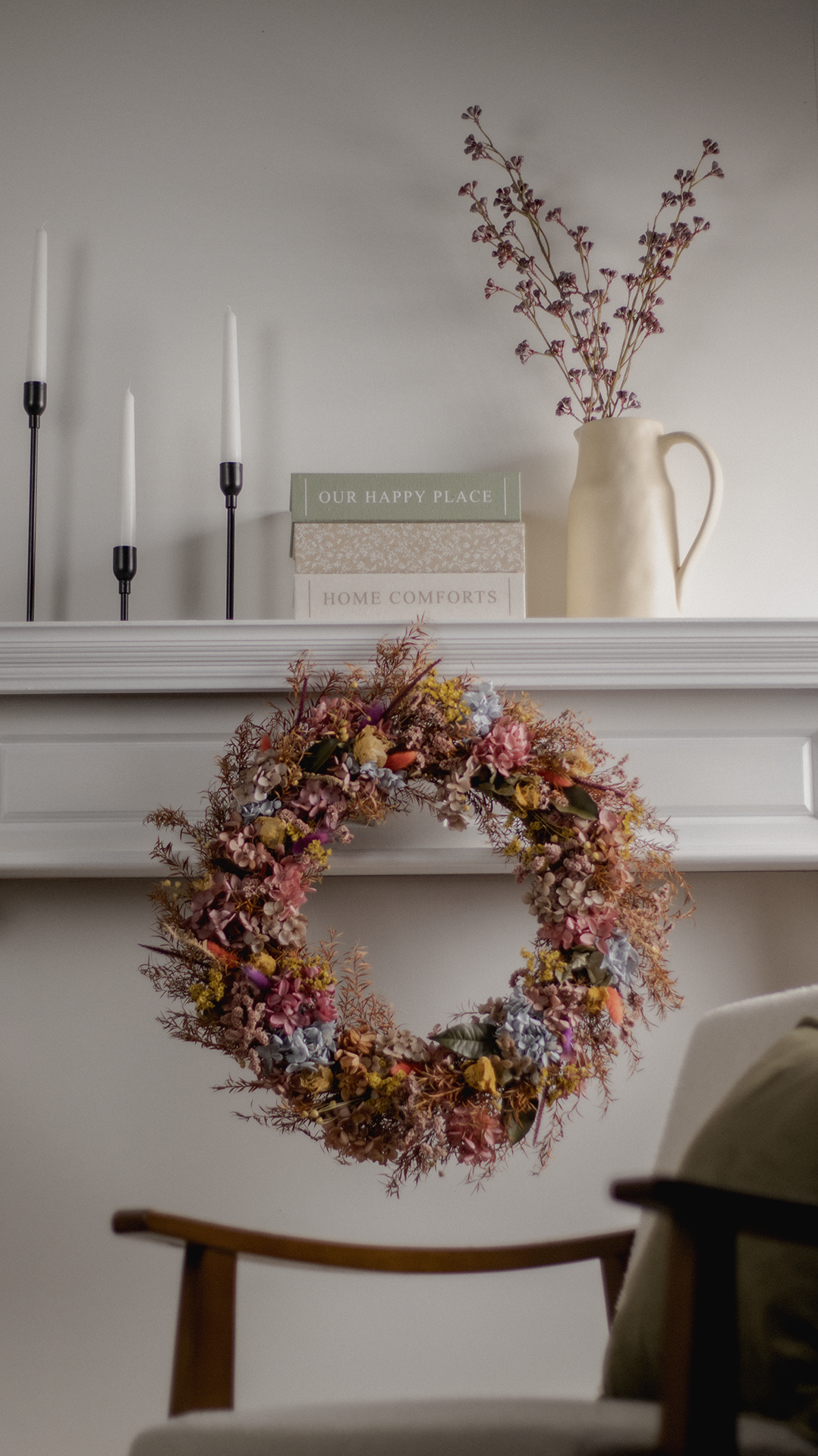 'Savanna' – A stunning handcrafted dried wreath that captures the warmth of a golden sunset and the untamed beauty of wild meadows. Featuring a rich blend of earthy tones, fiery amber hues, and delicate wildflowers, this wreath brings a rustic yet elegant charm to any space. Perfect for adding a cozy, nature-inspired touch to your home all year round. Read more