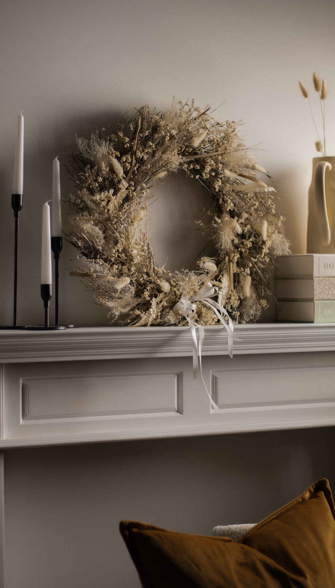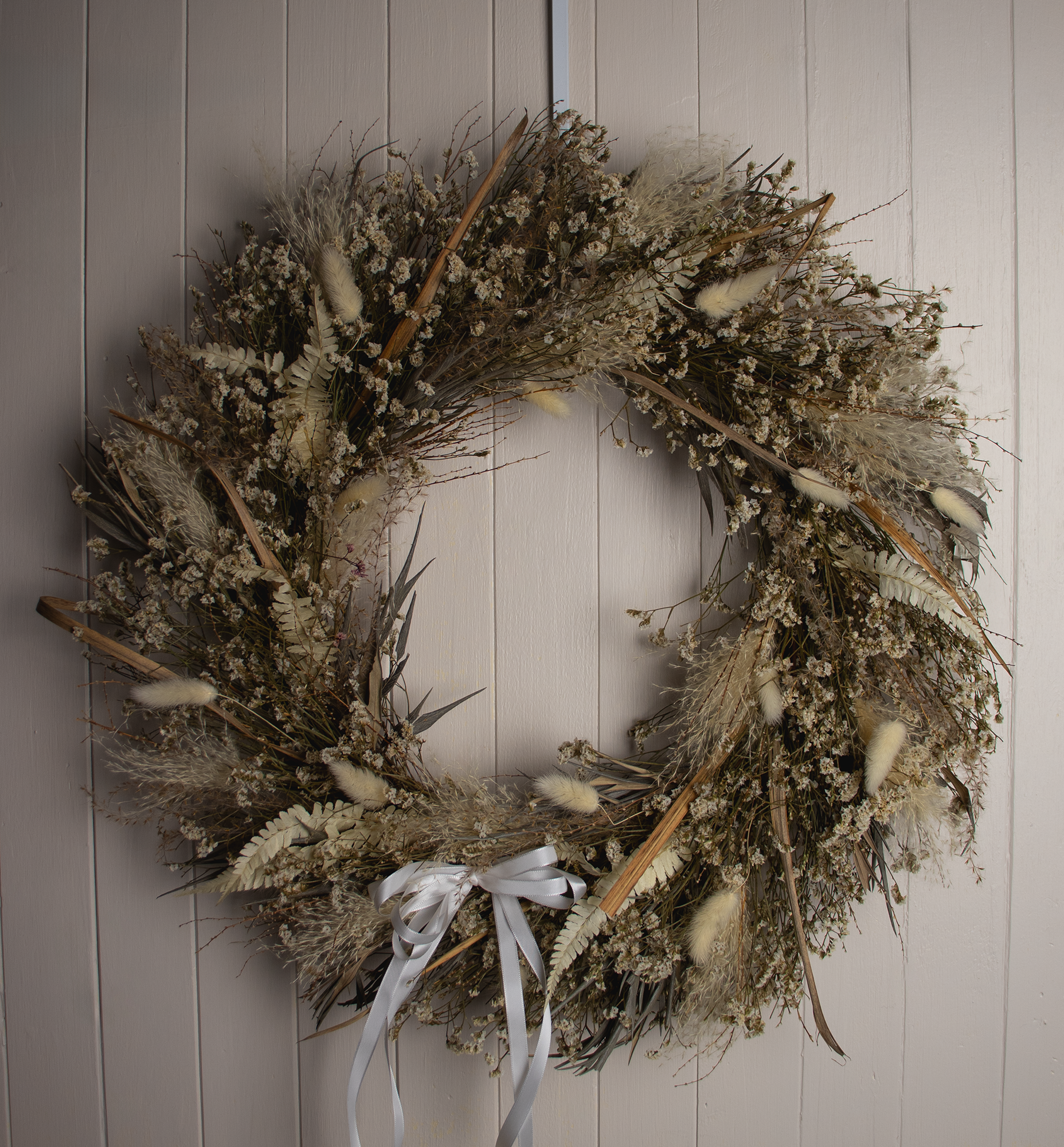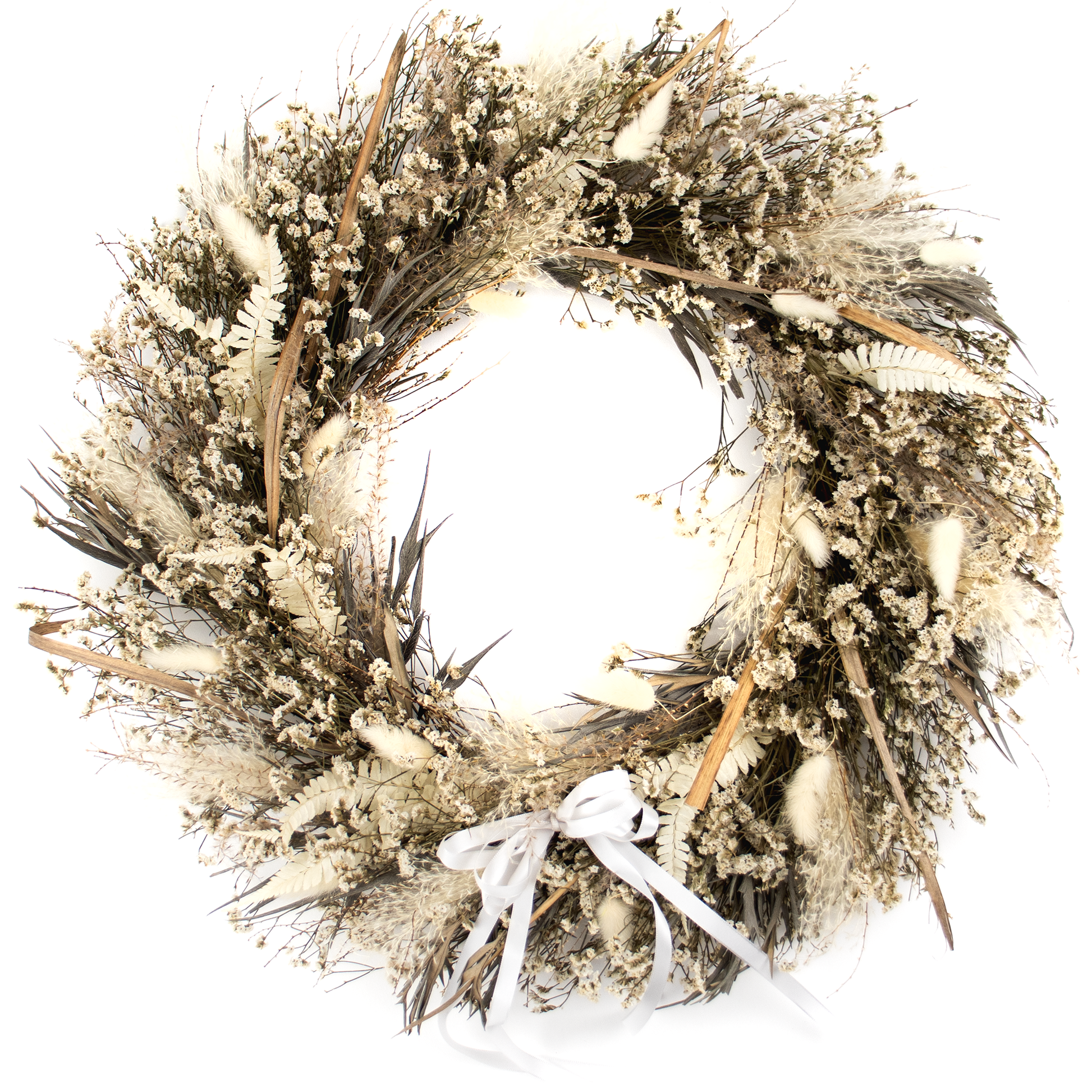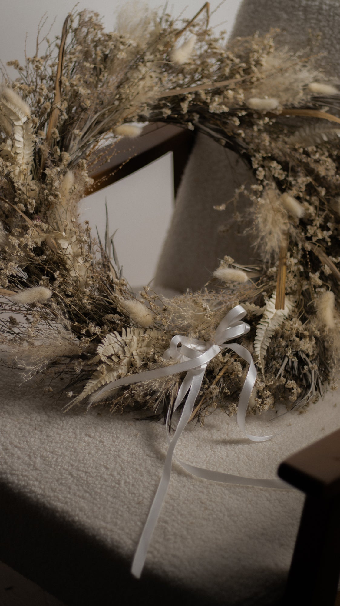 The 'Ivory Willow' wreath is an elegantly crafted blend of delicate dried grasses, fluffy bunny tails, and whispering wheat, this wreath captures the serene beauty of winter meadows. Its soft ivory hues and feathery textures bring a touch of rustic elegance to any space. Perfect for adding a timeless, natural charm to your home all year round. Read more