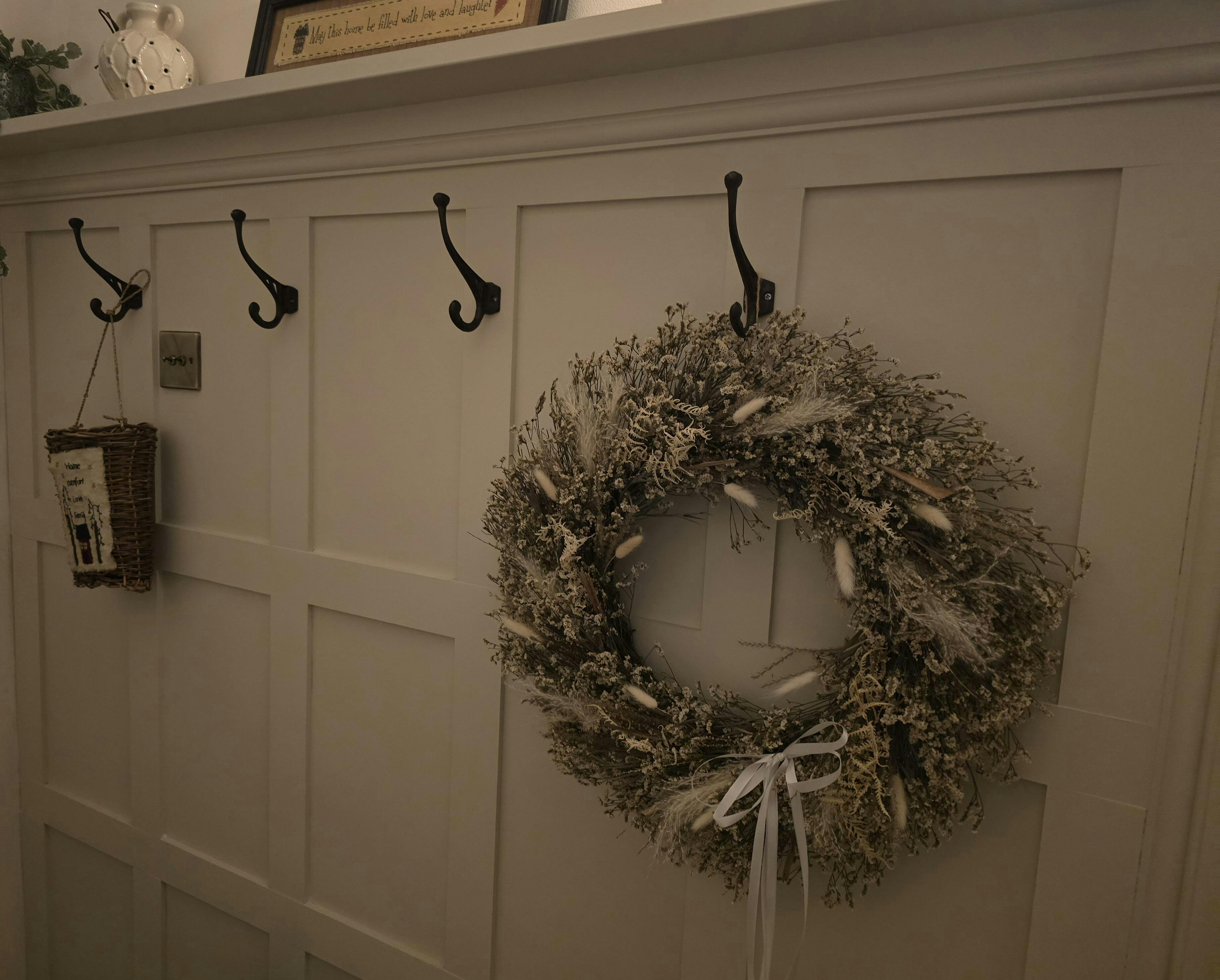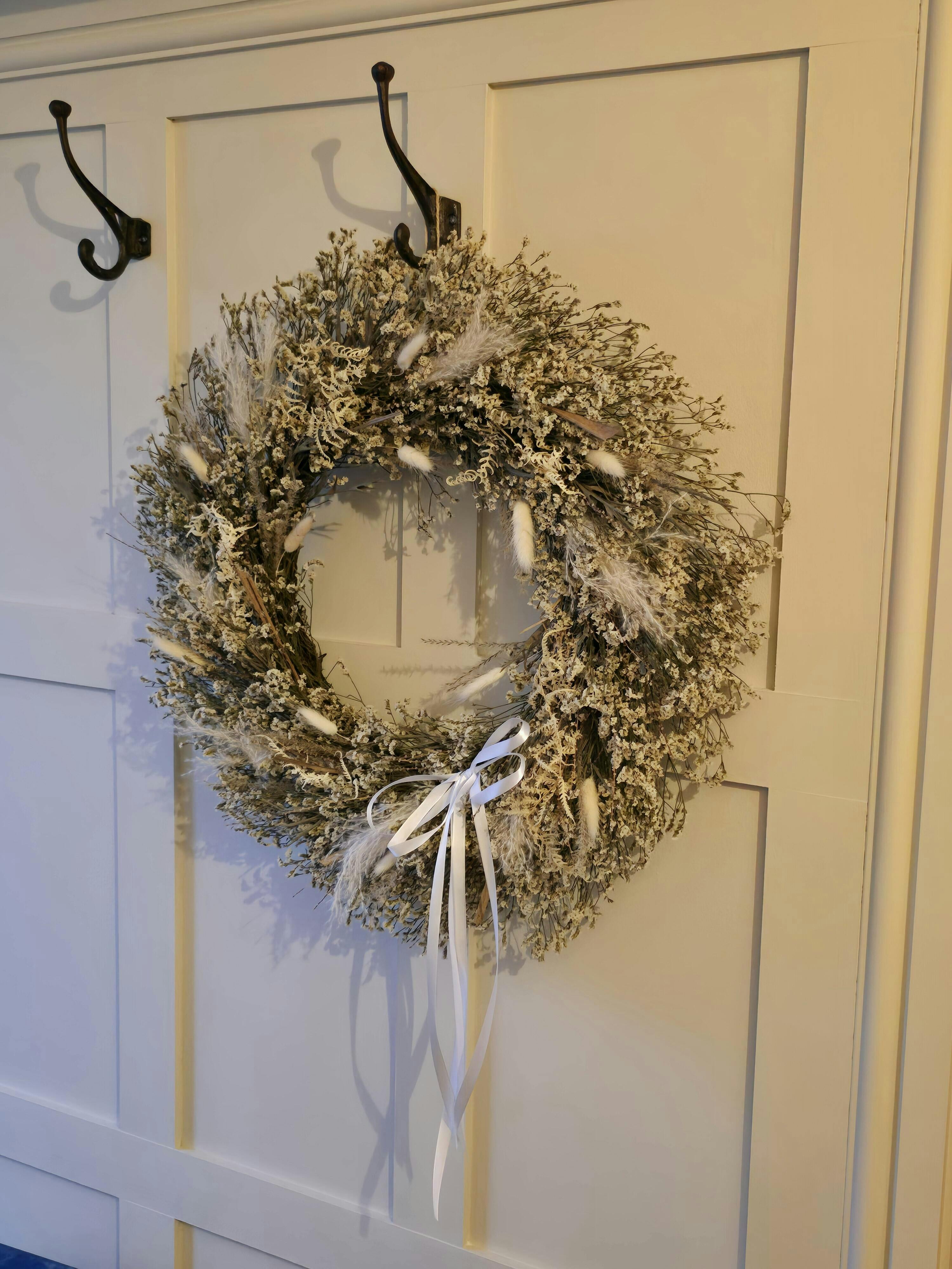The 'Ivory Willow' wreath is an elegantly crafted blend of delicate dried grasses, fluffy bunny tails, and whispering wheat, this wreath captures the serene beauty of winter meadows. Its soft ivory hues and feathery textures bring a touch of rustic elegance to any space. Perfect for adding a timeless, natural charm to your home all year round. Read more