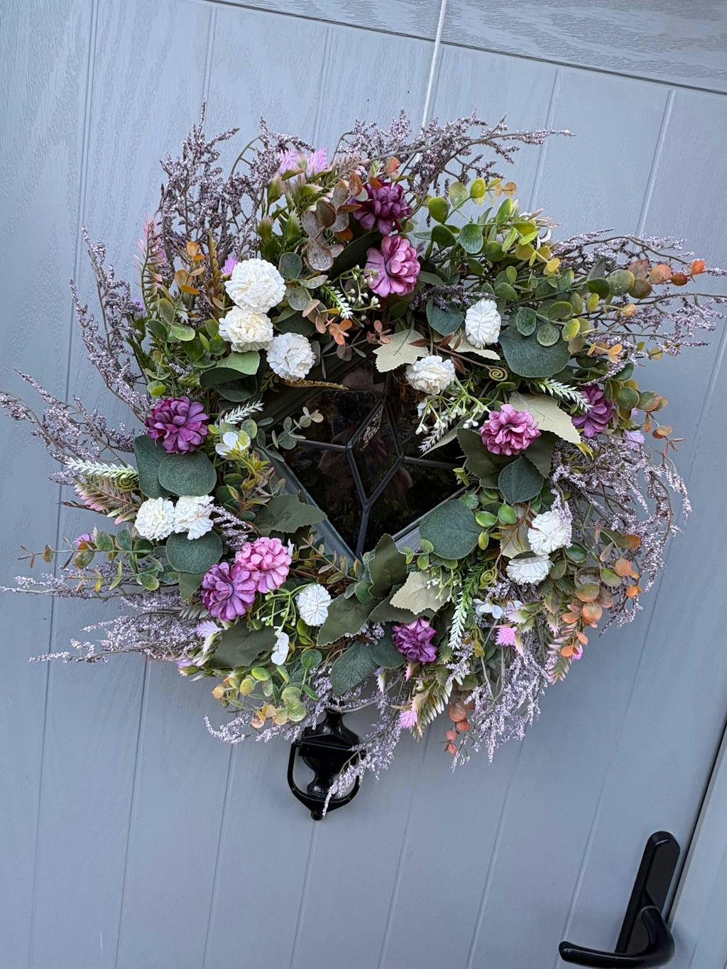 Our luxurious Eucalyptus Breeze wreath features a range of colours including Purple, White, Green.