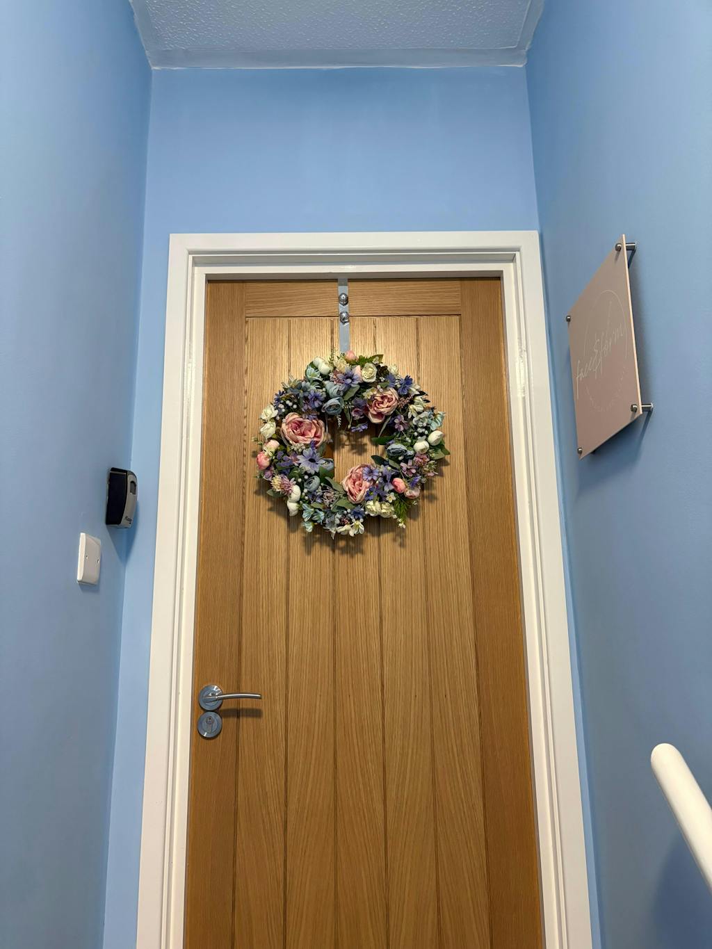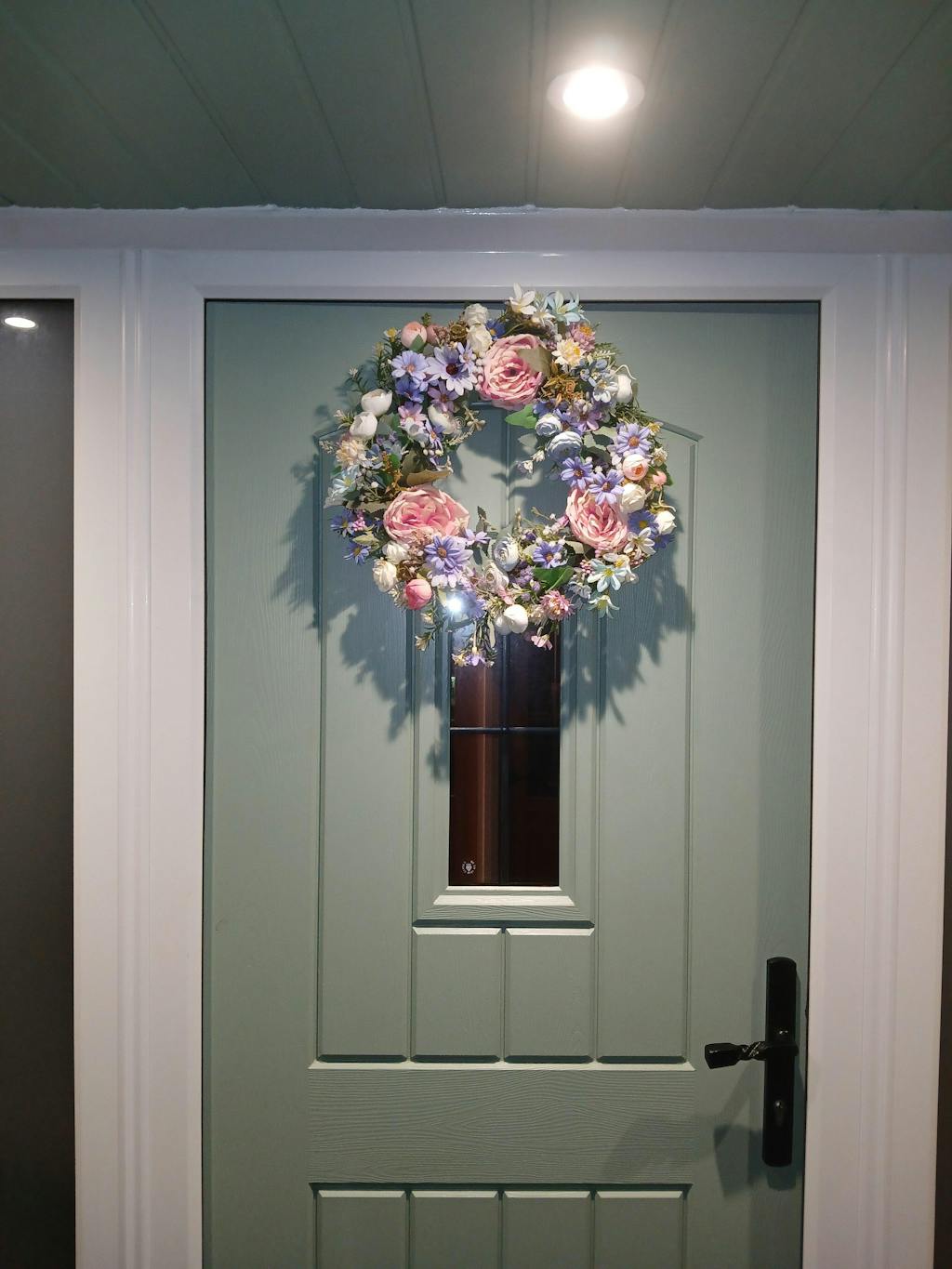 Our luxurious Pink Peonies Wreath wreath features a range of colours including Blue, Pink, Purple, Green, White.